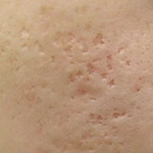 该类型痘坑,表面开口窄小,下端尖细,凹陷程度最深,这类痘坑被列为最难治疗的痘坑。